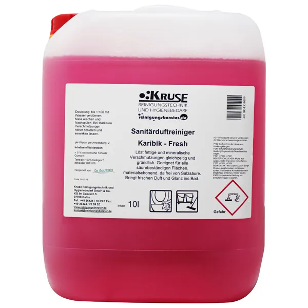 Meine Frage zum Produkt "Sanitärreiniger mit Duft Kruse Karibik Fresh 10 L"