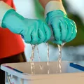 Nitrilhandschuh, der sowohl geeignet ist für den Umgang mit