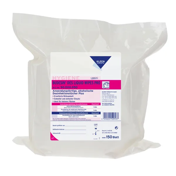 Meine Frage zum Produkt "Desinfektionstücher Kleen Purgatis Budesin Des Liquid Pro"