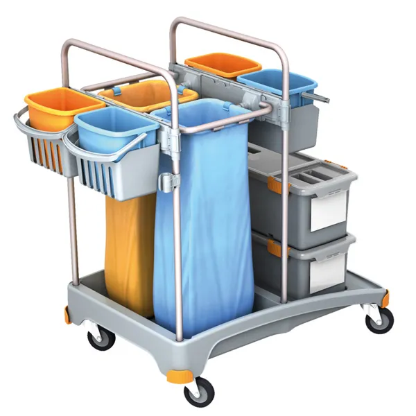 mit 2 Bügeln, 2 Moppboxen, 2 Abfallsackhaltern und 4 Eimern
