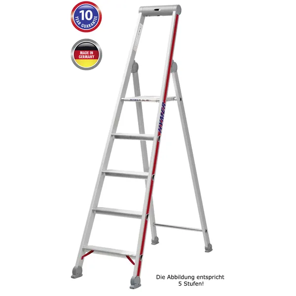 Meine Frage zum Produkt "Doppelleiter Hymer Stufenstehleiter mit Plattform 8 Stufen"
