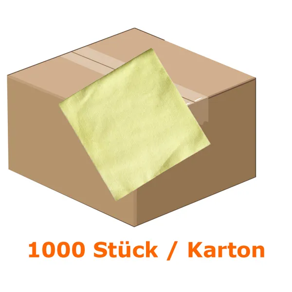 Meine Frage zum Produkt "Mikrofasertuch Mopptex Vliestuch Light Gelb 35x40cm Karton"