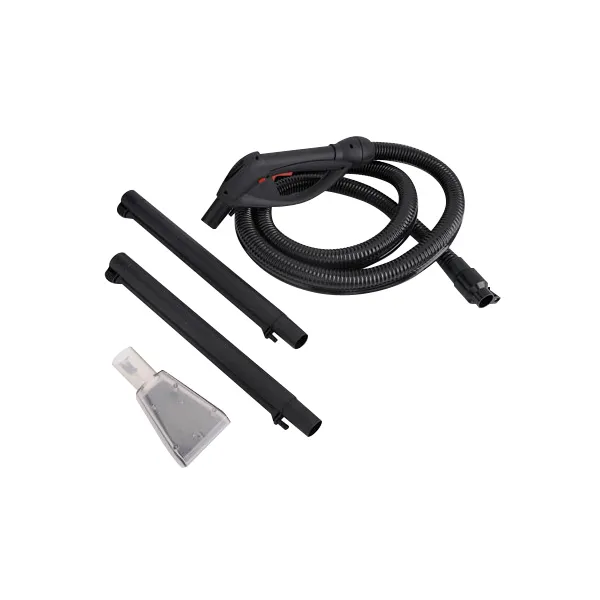 Sprühschlauch, Saugschlauch, Pistole und Polsteraufsatz.
