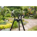stabilen Dreibein mit einer Kette befestigt. Durch die