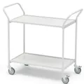 Dieser Tischwagen besitzt zwei Fahrhandgriffe.
